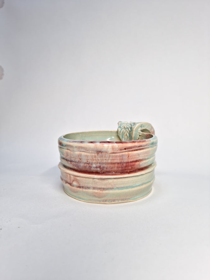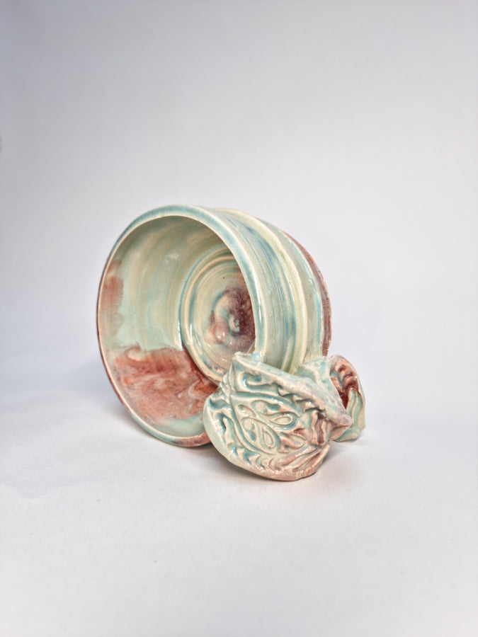 Delicious tones of pink, blue and cream. This mug is completely unique, and has a strong character!